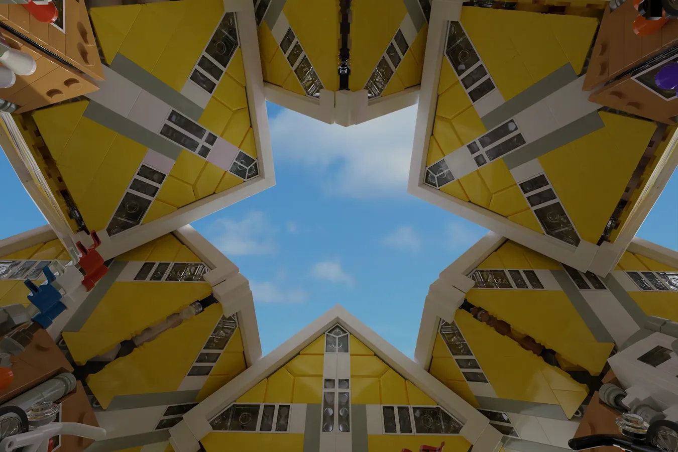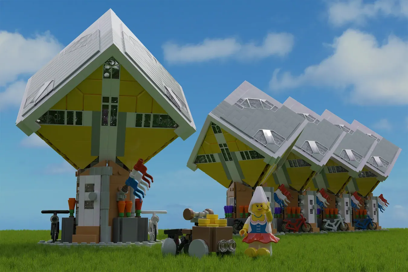 As casas cubo de Roterdão são relativamente conhecidas no meio e não deixam de ser uma curiosidade não tanto pelas suas ideias conceptuais mas mais pelo seu aspecto exterior. Este projecto do Jheewee representa de forma bastante satisfatória o conceito utilizando peças LEGO e algumas técnicas fora do convencional. Bem, o formato da casa assim o exige.